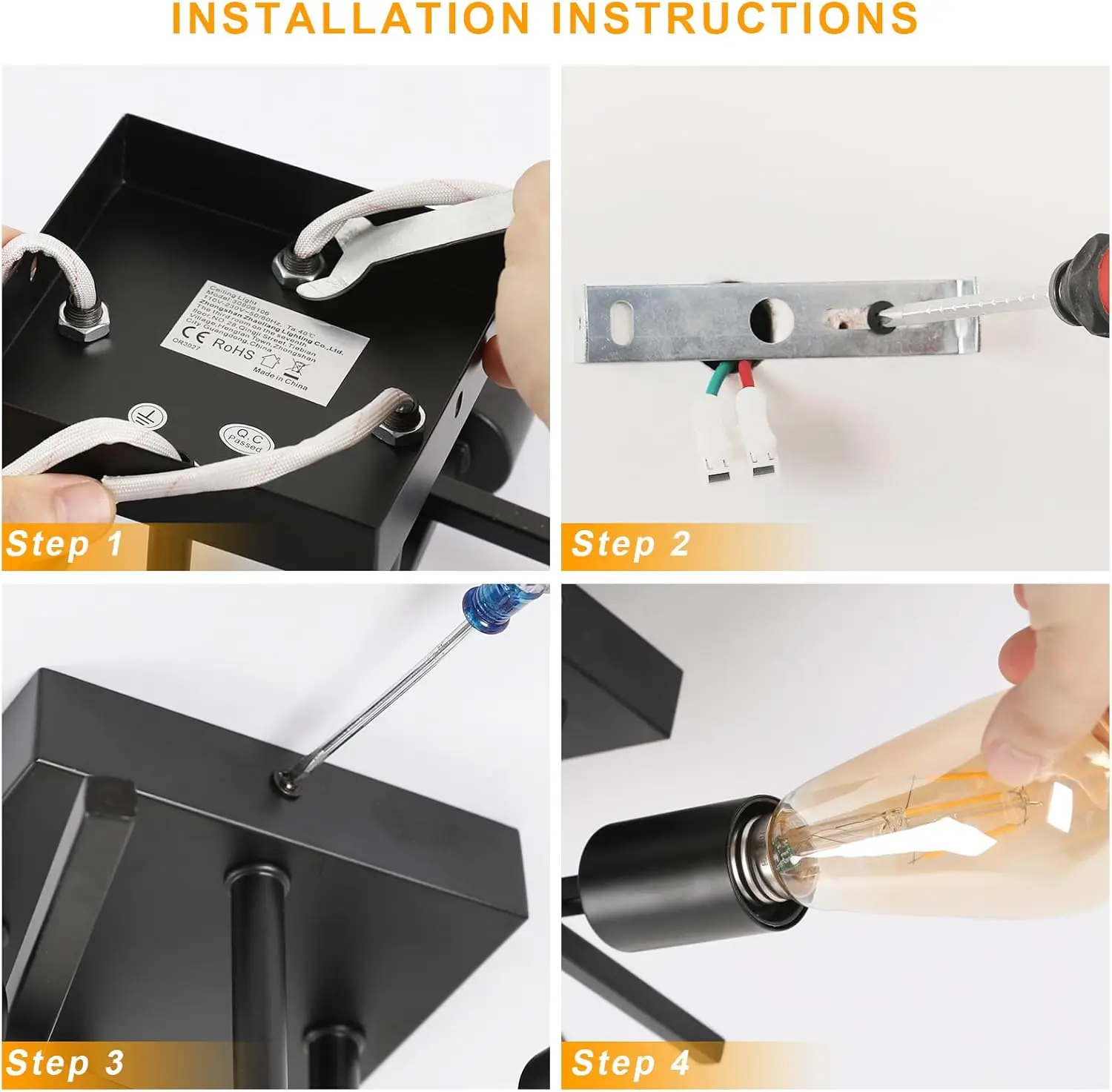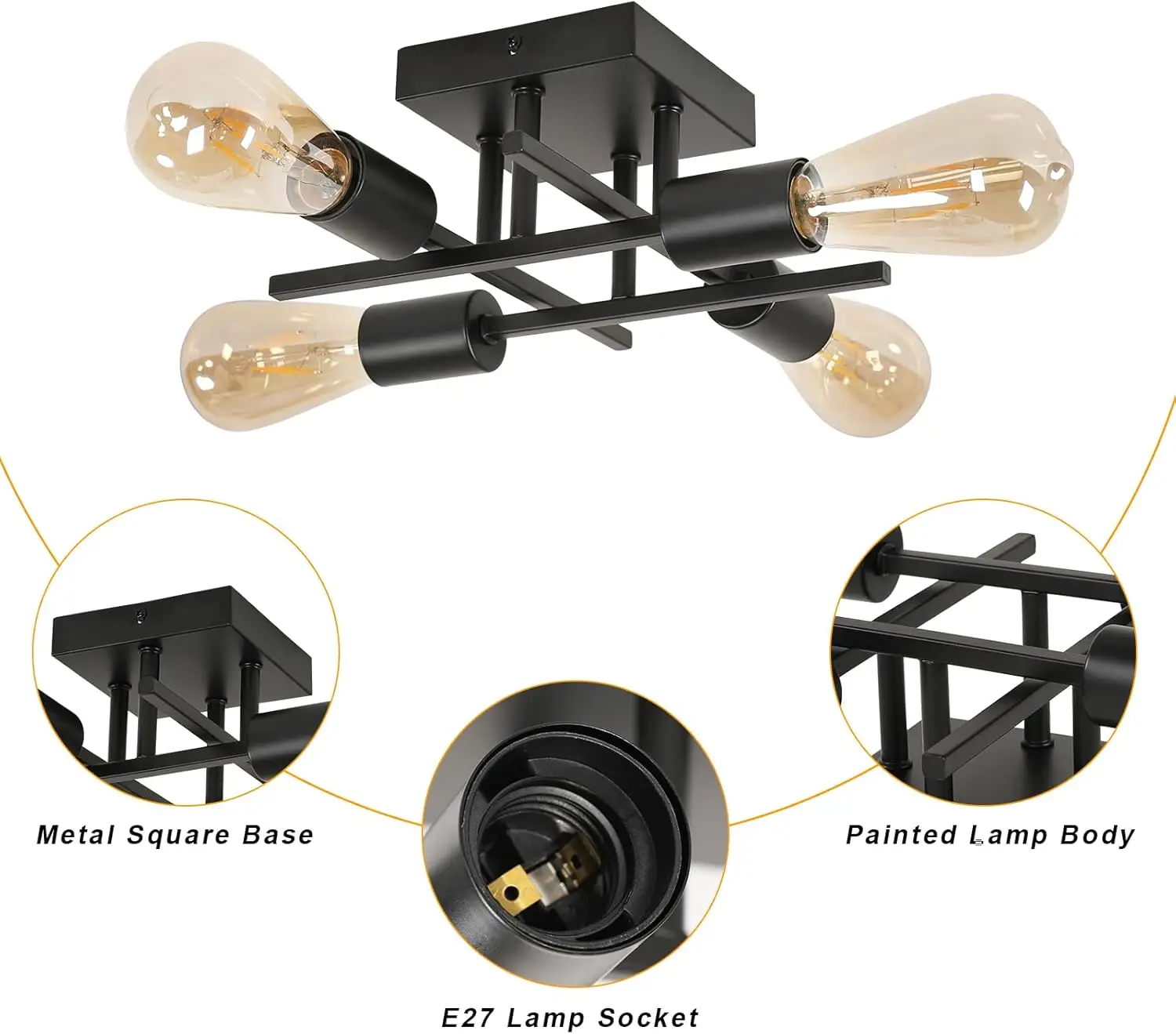 Full customization (4x E27): Standard E27 sockets give you endless possibilities. You can choose from warm-colored bulbs for a cozy atmosphere or powerful LED bulbs for maximum brightness.