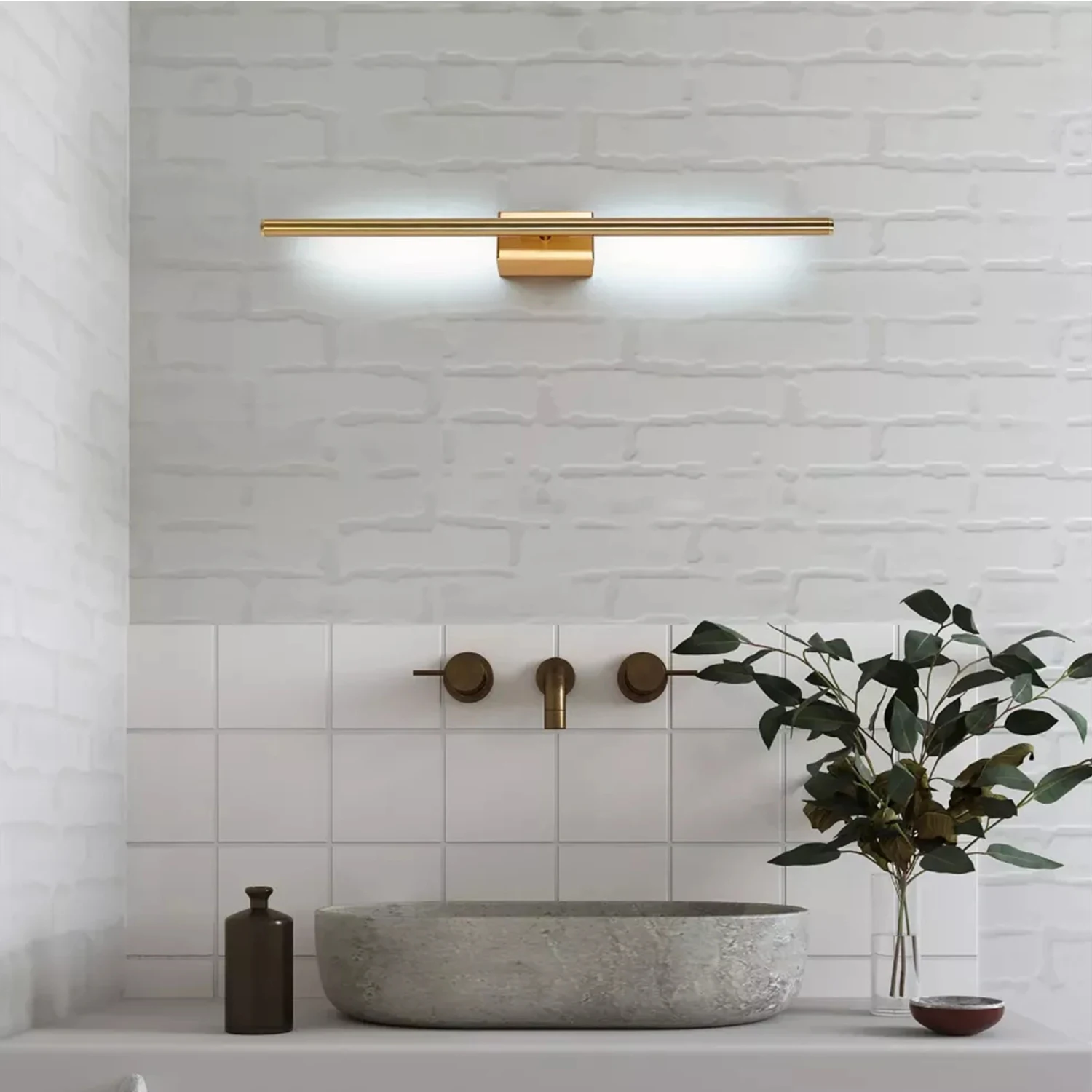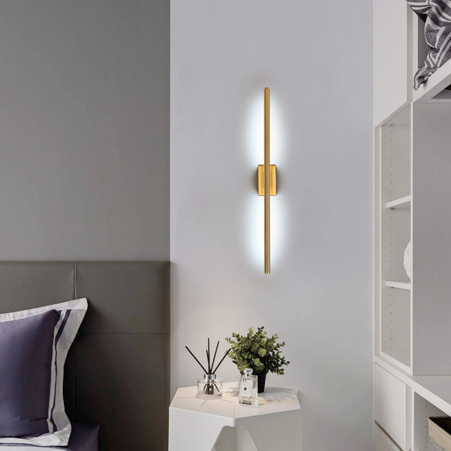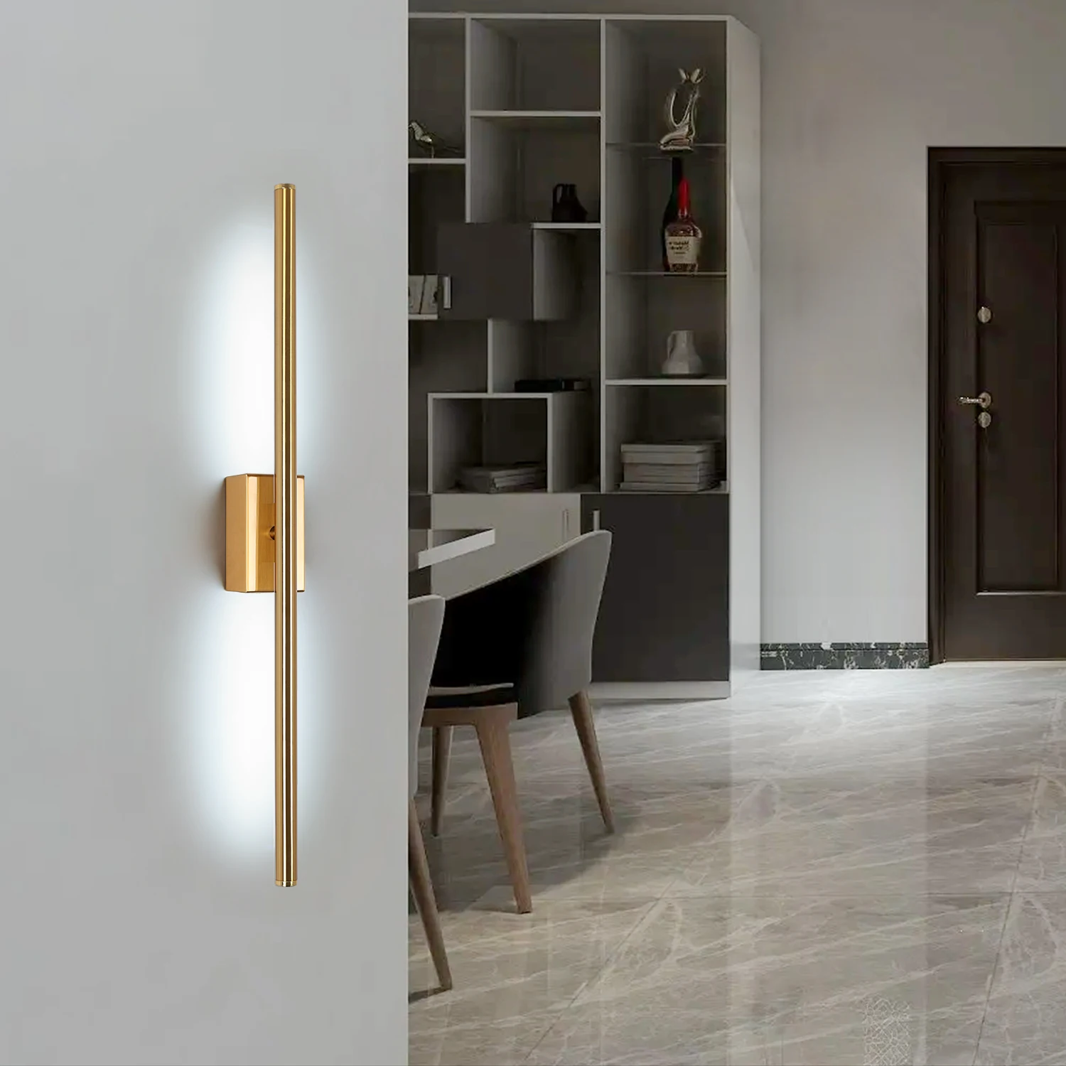 A touch of gold in a minimalist design. Mika is a wall lamp that proves that true elegance lies in simplicity. This slim, linear "Long Strip" fixture combines modern minimalism with a luxurious gold finish. Crafted from high-quality aluminum, the lamp emits a clean, cool 6000K light that contrasts beautifully with the gold body. Mika is the perfect choice for a bedroom, hallway, or living room, where it serves as a discreet yet prestigious source of light, enhancing the contemporary character of the interior.