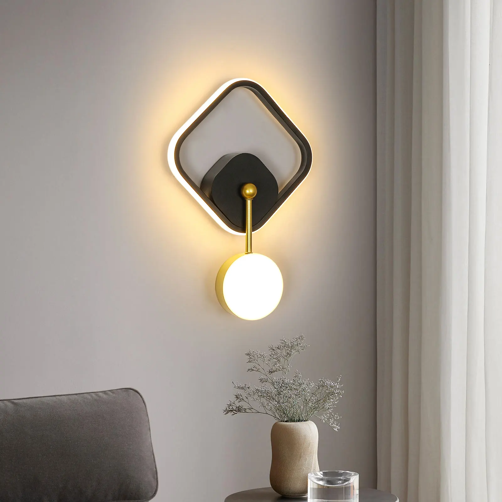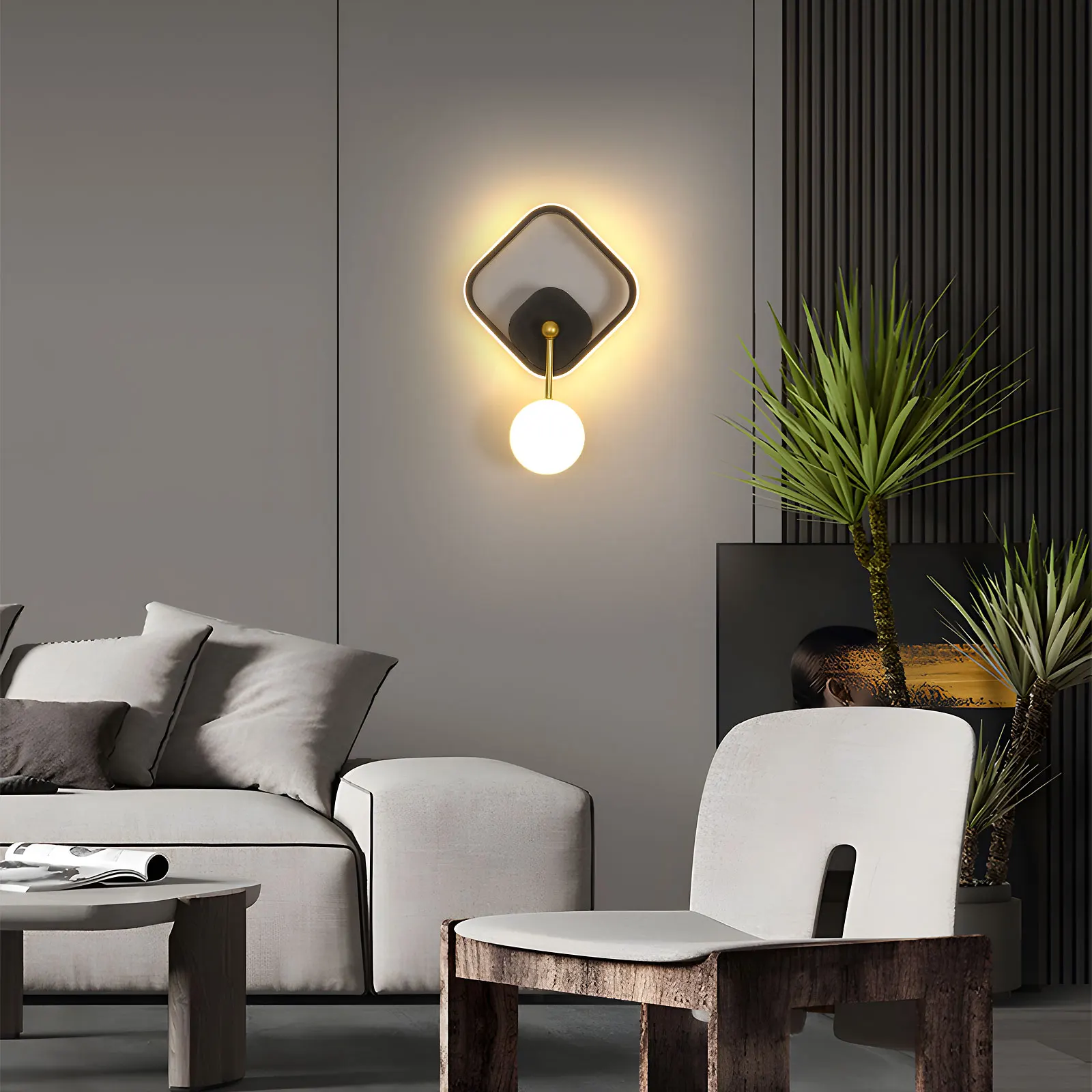 Geometryczna elegancja w złotym wydaniu. Gia to kinkiet, który definiuje styl "Light Luxury", łącząc minimalistyczną formę z luksusowym wykończeniem. Unikalna kompozycja kwadratu i koła w czarno-złotej oprawie tworzy wyrazisty, artystyczny akcent na każdej ścianie. Dzięki zintegrowanemu źródłu LED o mocy 21W, lampa emituje ciepłe, złociste światło (3000K), które natychmiast buduje atmosferę przytulności i elegancji. To idealny wybór do reprezentacyjnych salonów, klatek schodowych czy sypialni, gdzie oświetlenie ma nie tylko rozjaśniać przestrzeń, ale przede wszystkim ją zdobić.