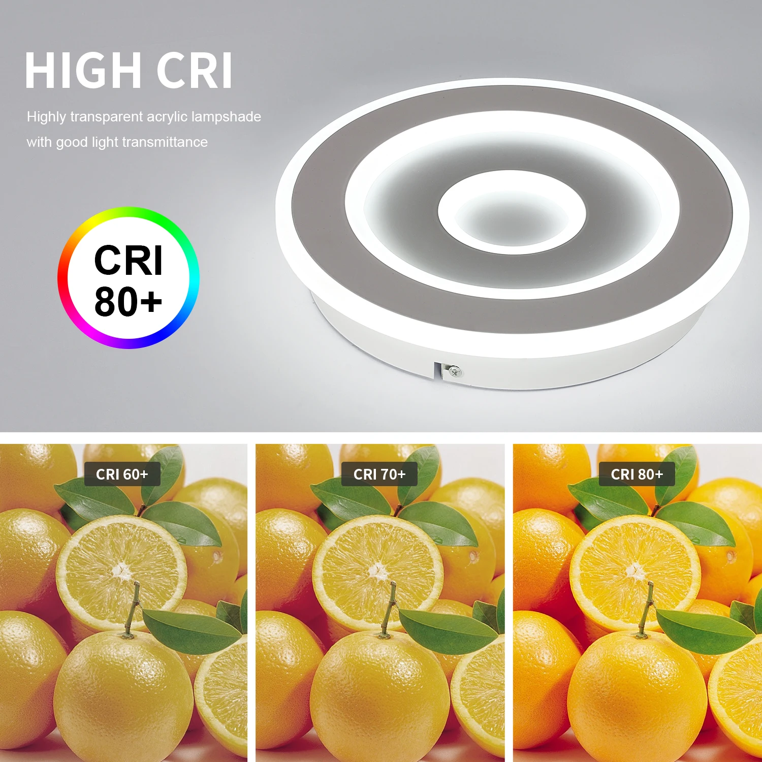 Jednorodne rozproszenie: Akrylowy klosz nowej generacji sprawia, że diody LED są niewidoczne, a emitowane światło jest miękkie i równomiernie rozłożone na całej powierzchni lampy, co zapobiega powstawaniu cieni.