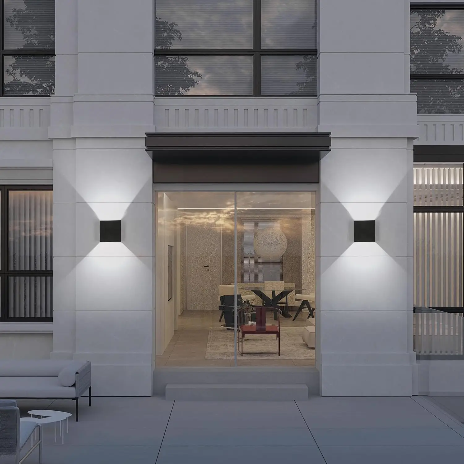 Architektoniczna gra świateł na Twojej elewacji. Cube Outdoor Duo to zestaw dwóch nowoczesnych kinkietów zewnętrznych w formie minimalistycznych kostek. Ich największym atutem jest inteligentna konstrukcja z ruchomymi przesłonami, która pozwala na samodzielną regulację kąta świecenia. Możesz stworzyć wąski, dekoracyjny strumień światła u góry i szeroki u dołu (lub odwrotnie), zamieniając elewację domu, taras czy ogrodzenie w unikalną instalację świetlną. Głęboka, matowa czerń i geometryczna bryła sprawiają, że lampy wyglądają niezwykle prestiżowo, podkreślając nowoczesny charakter budynku.