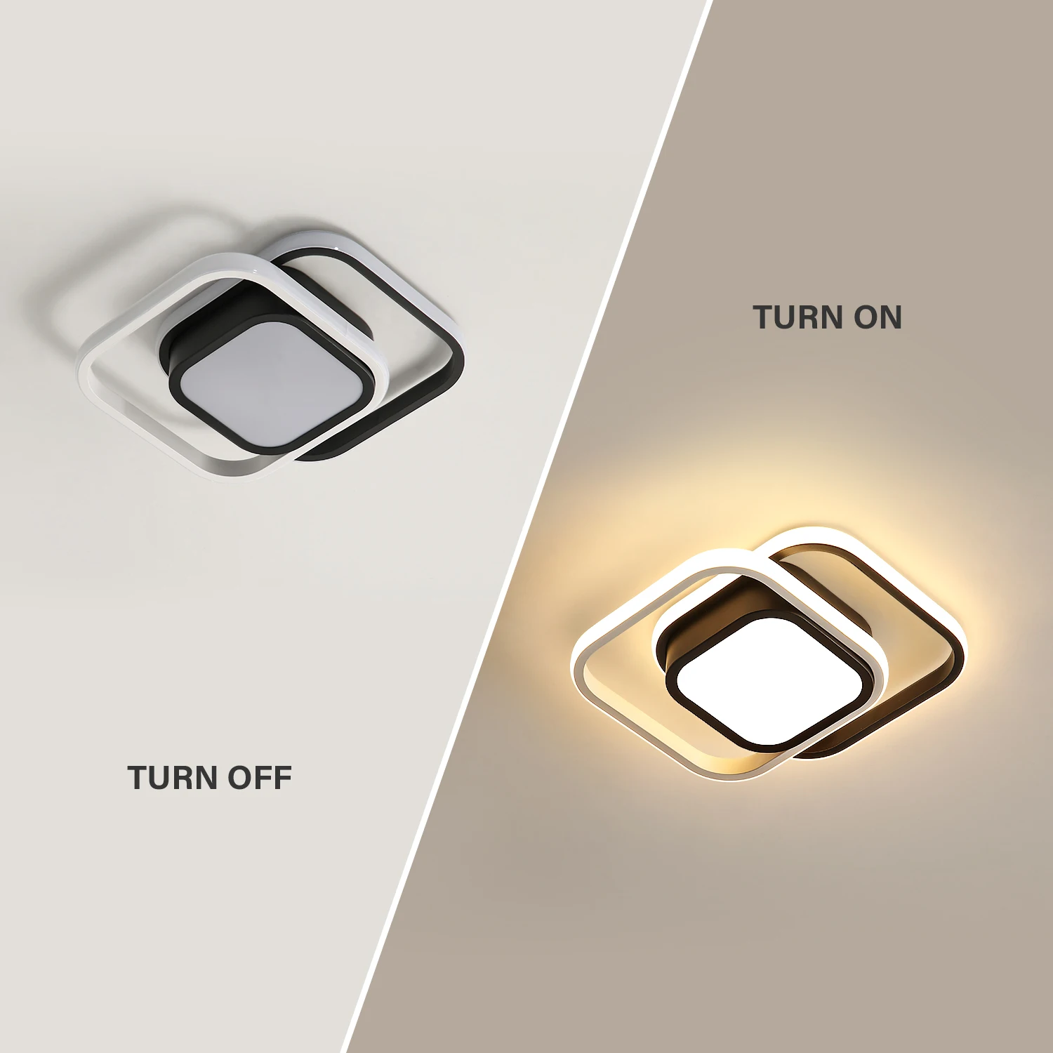 Geometria w doskonałej równowadze. Kvadrato Duo to nowoczesna lampa sufitowa, która przyciąga wzrok unikalną kompozycją dwóch przenikających się kwadratów. Projekt ten umiejętnie łączy kontrastową kolorystykę czerni i bieli z surowością aluminium, tworząc dynamiczną, a zarazem harmonijną formę. Dzięki dużej mocy (32W) i ciepłej temperaturze barwowej, lampa nie tylko stanowi wyrazisty element dekoracyjny, ale przede wszystkim wypełnia pomieszczenie kojącym, domowym blaskiem. To idealna propozycja do salonu, sypialni lub nowoczesnego biura, gdzie oświetlenie ma podkreślać nowoczesny charakter wnętrza.