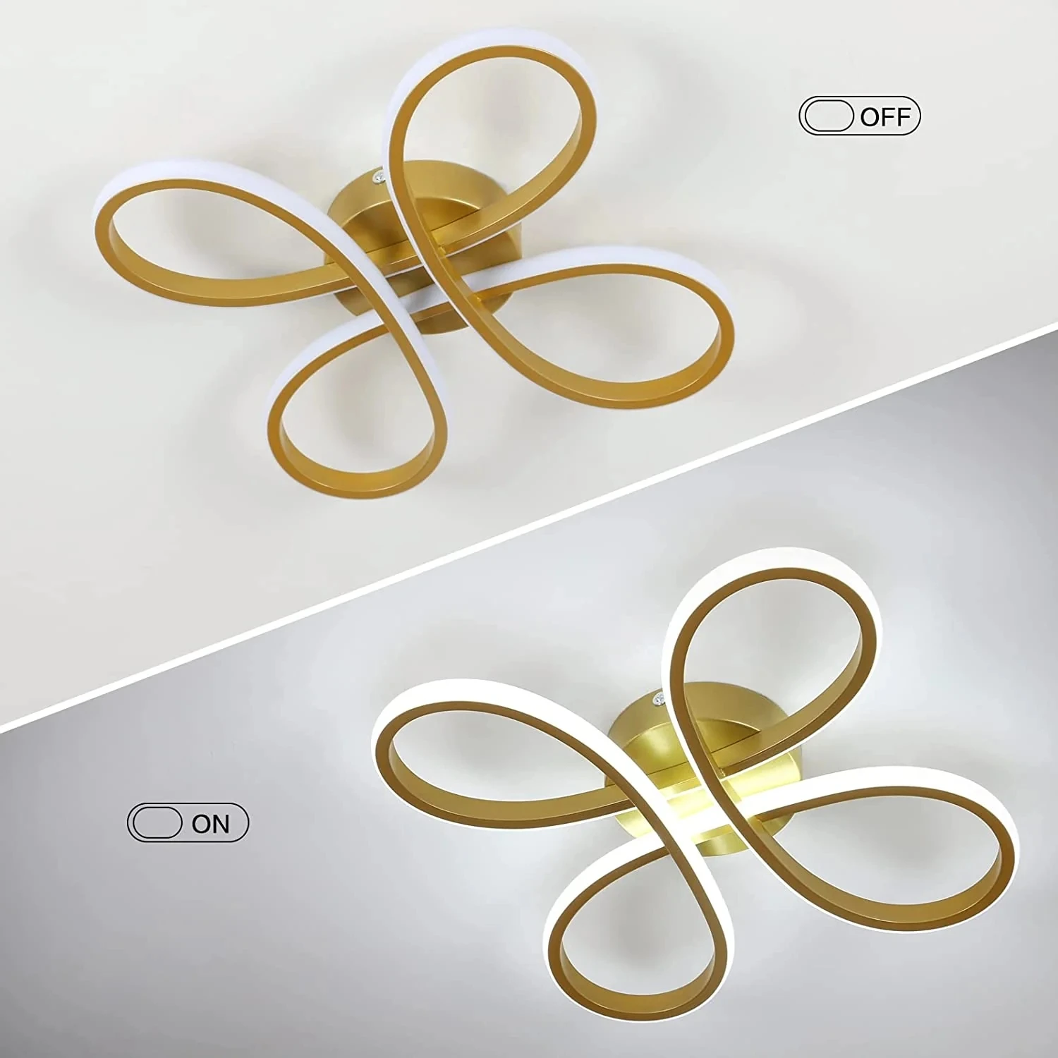 Złoty dotyk nowoczesności. Model Aureum to wyrafinowana lampa sufitowa, która łączy luksusowe, złote wykończenie z lekką, nowoczesną formą. Jej design oparty na przeplatających się łukach przypomina stylizowany kwiat lub szlachetny ornament, który nadaje wnętrzu prestiżowy charakter. Wykonana z wysokiej jakości aluminium, lampa przyciąga wzrok subtelnym połyskiem, a dzięki zastosowaniu elastycznych dyfuzorów silikonowych, emituje intensywne, ale idealnie rozproszone światło. To doskonały wybór dla osób, które chcą wprowadzić do swojej sypialni lub salonu element elegancji w stylu glamour, nie rezygnując z minimalistycznej estetyki.