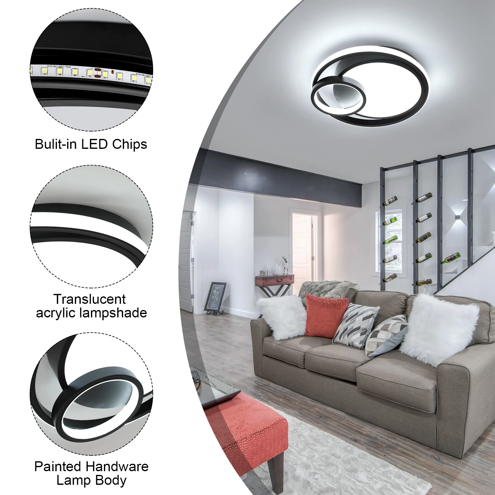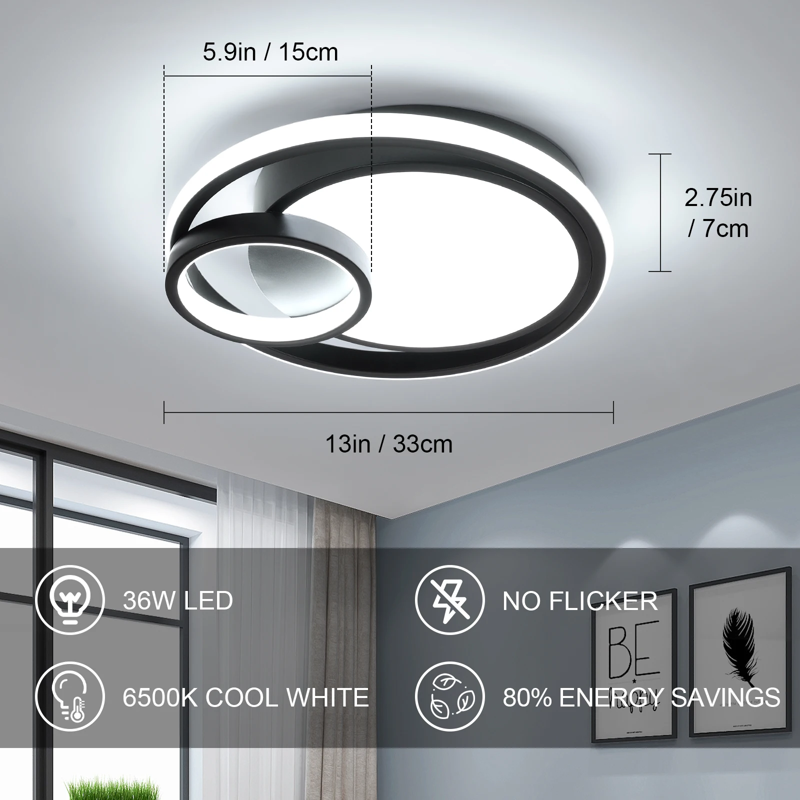 Mocna prezencja i jasność: Zintegrowany moduł LED o mocy 36W generuje aż 4050 lumenów, co pozwala na skuteczne rozjaśnienie nawet dużych pomieszczeń (do ) przy zachowaniu pełnej energooszczędności.