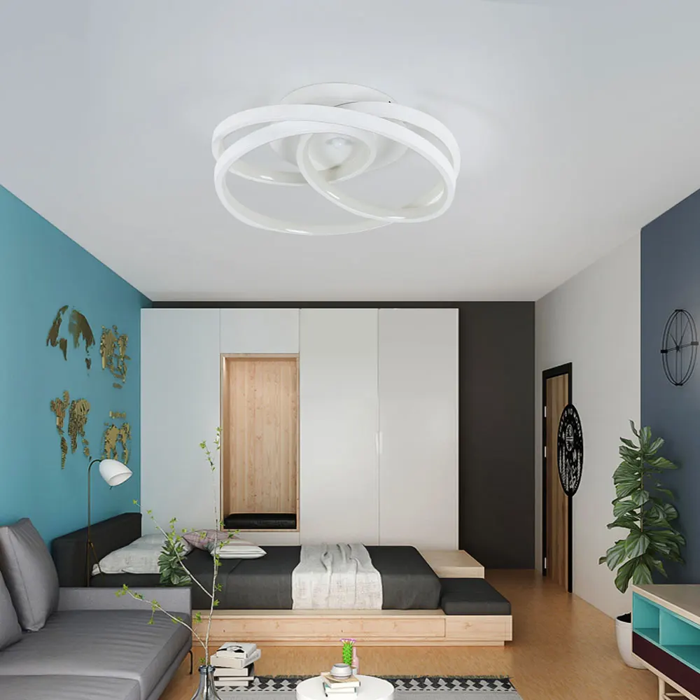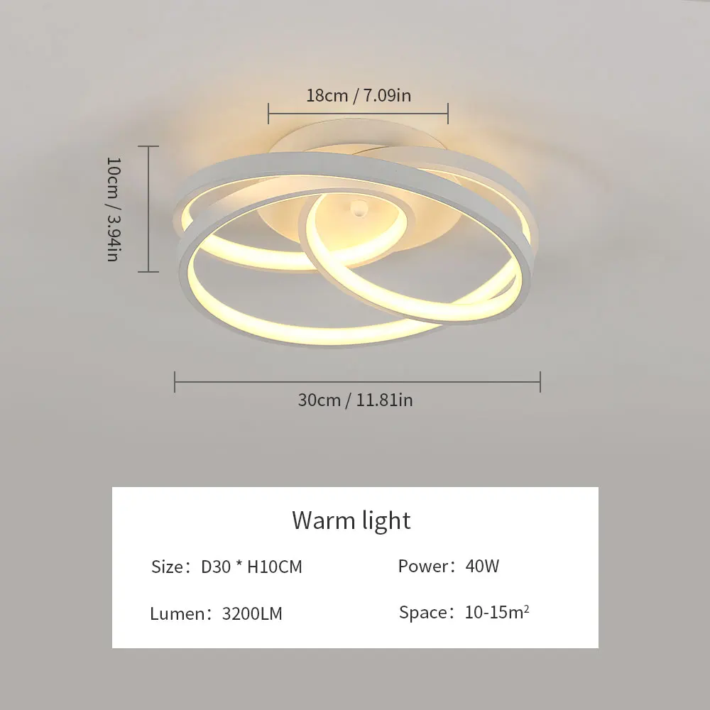 Dynamika zamknięta w ciepłym świetle. Model Vortex Warm to nowoczesna interpretacja klasycznego plafonu, oparta na koncepcji trzech przenikających się obręczy. Spiralny układ pierścieni nadaje oprawie trójwymiarowości i wizualnej lekkości, sprawiając, że lampa wygląda jak artystyczna rzeźba zawieszona pod sufitem. Emitowane przez nią ciepłe światło (3000K) tworzy w pomieszczeniu niezwykle przytulną, relaksującą atmosferę, idealną do sypialni czy salonu. Śnieżnobiałe wykończenie sprawia, że model ten dyskretnie wtapia się w jasne wnętrza, oferując jednocześnie mocny i wyrazisty akcent dekoracyjny.