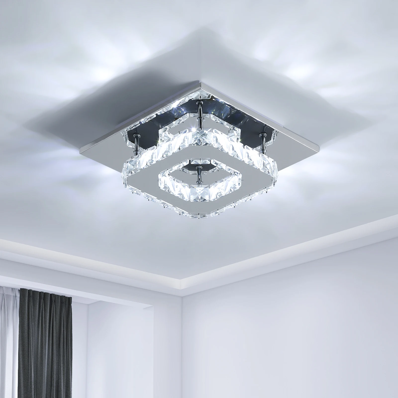 Luksus zamknięty w szkle. Model Crystal Nova to biżuteria dla Twojego sufitu, która łączy chłodną precyzję stali nierdzewnej z blaskiem transparentnych kryształów. Ten nowoczesny plafon został zaprojektowany, aby stać się świetlistym punktem centralnym w mniejszych pomieszczeniach, oferując nie tylko oświetlenie, ale i luksusowy efekt dekoracyjny. Dzięki krystalicznie czystej barwie światła 6500K, kryształy mienią się wieloma refleksami, nadając kuchniom, sypialniom czy korytarzom ekskluzywny, świeży wygląd.
