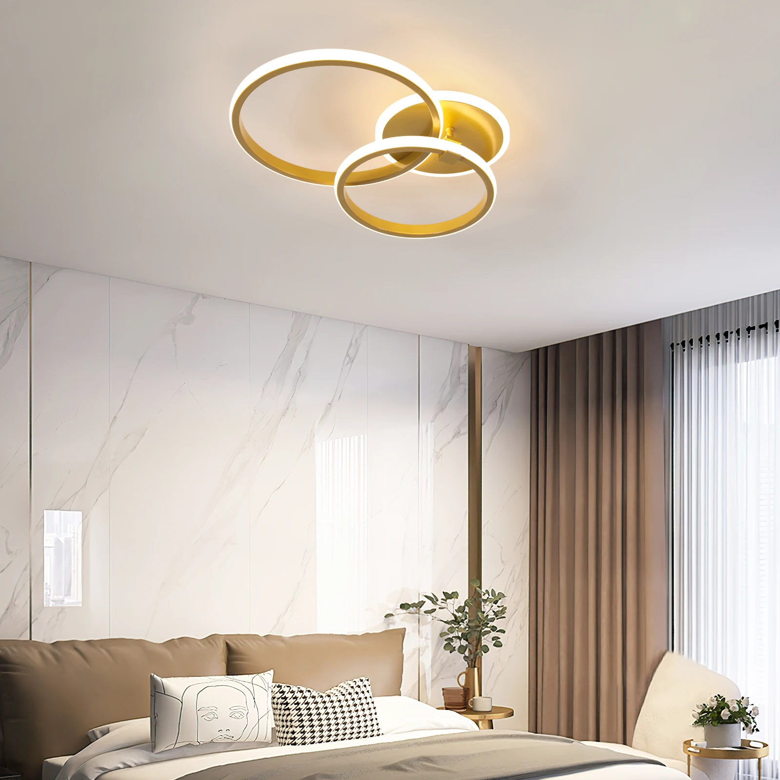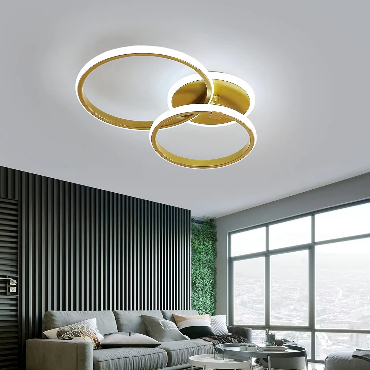 Golden harmony in motion. The Vela model is a sophisticated ceiling fixture that combines a prestigious gold hue with modern, geometric freedom. Two intersecting rings create a light composition that introduces an air of luxury and a jewel-like detail to the interior. Thanks to its unique design, the lamp allows for subtle personalization, becoming a dynamic decorative element in any stylish space.