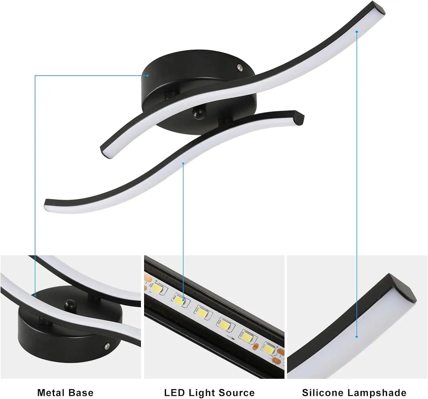 • Wave Design: Two wave-shaped LED profiles provide a wide beam angle, effectively filling the space with a bright, crystalline glow without dead zones.