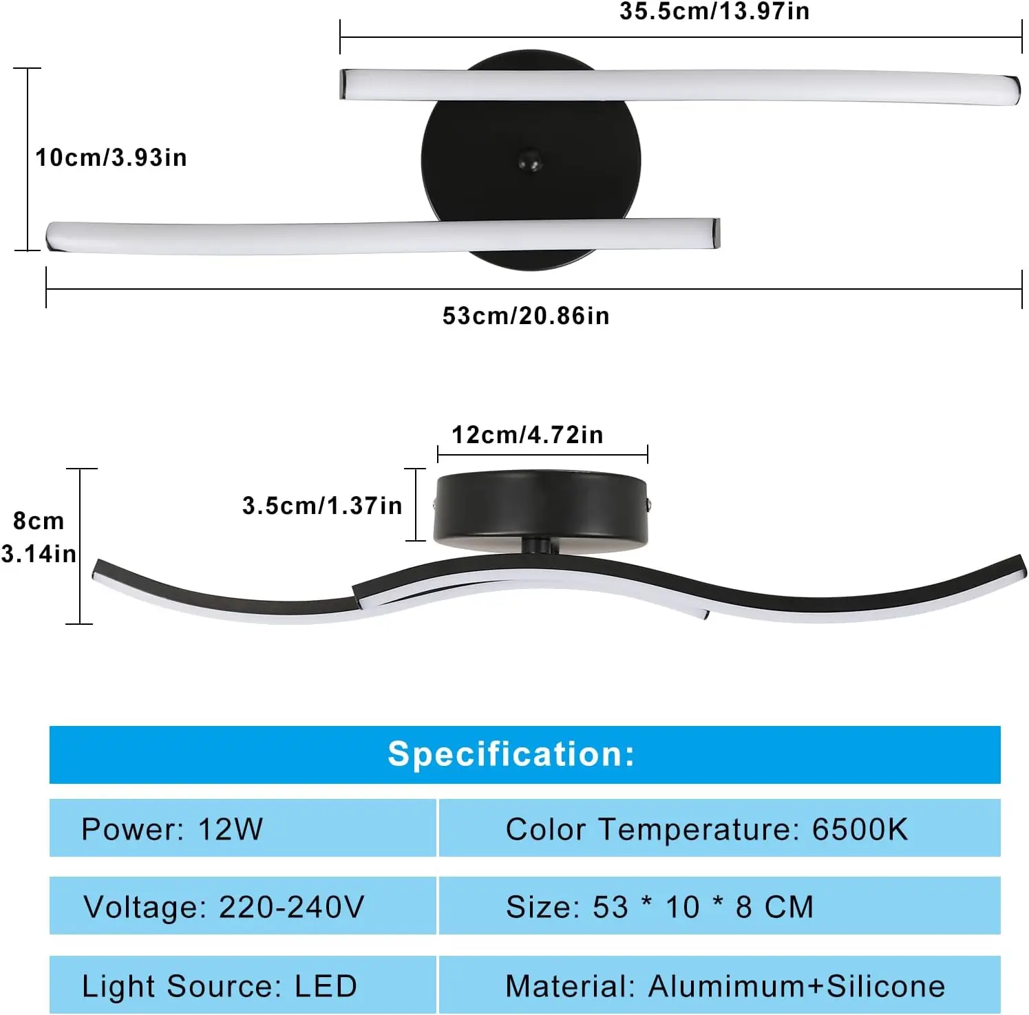 • Power: 12W LED (integrated)