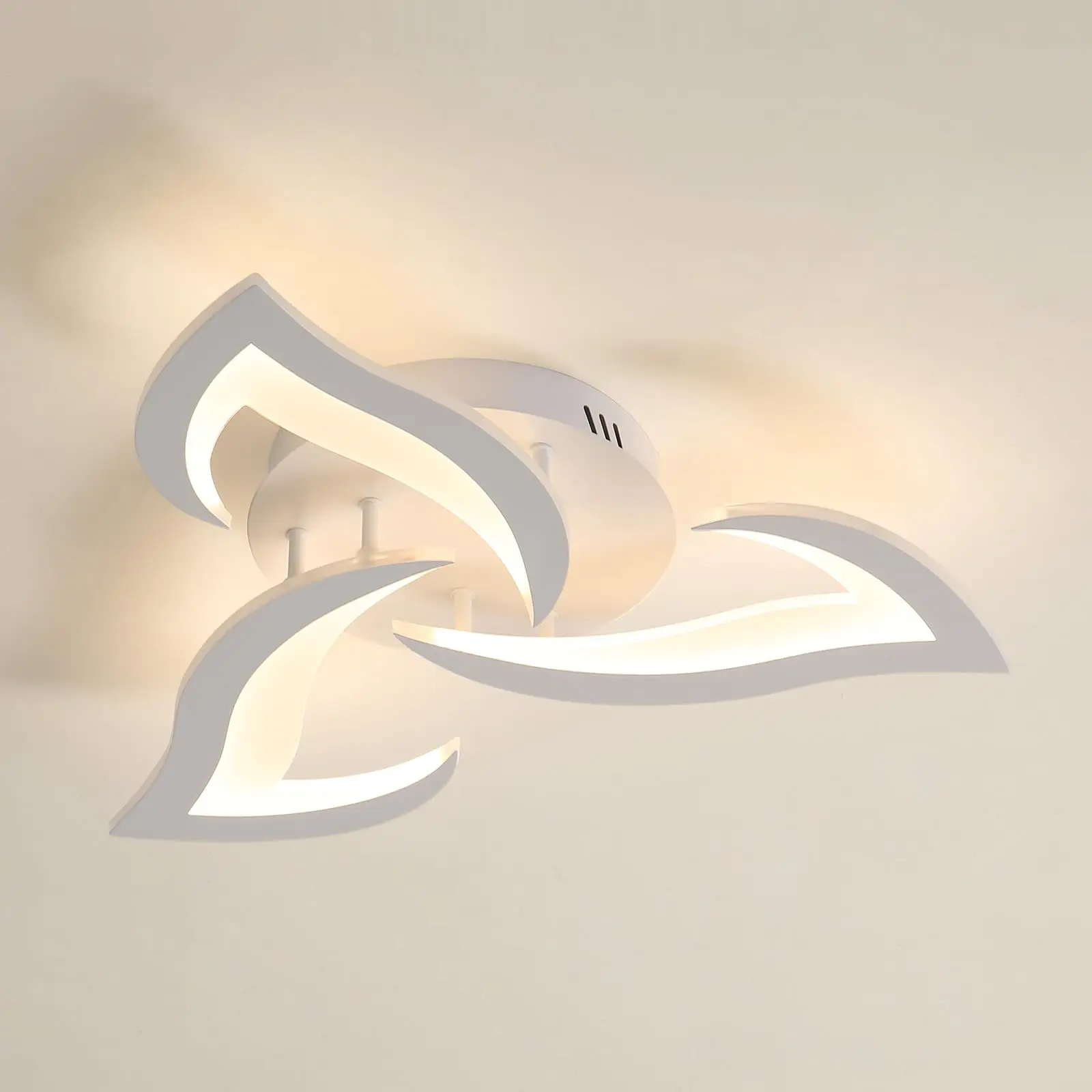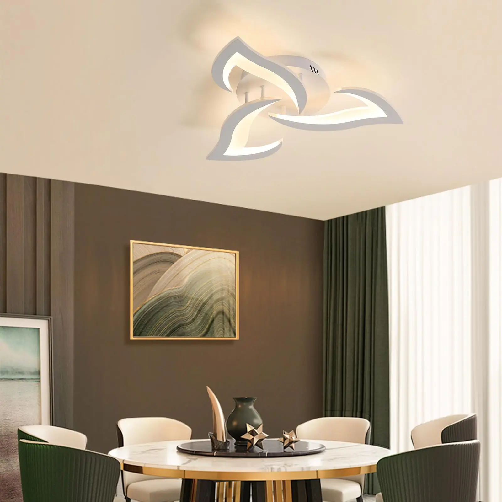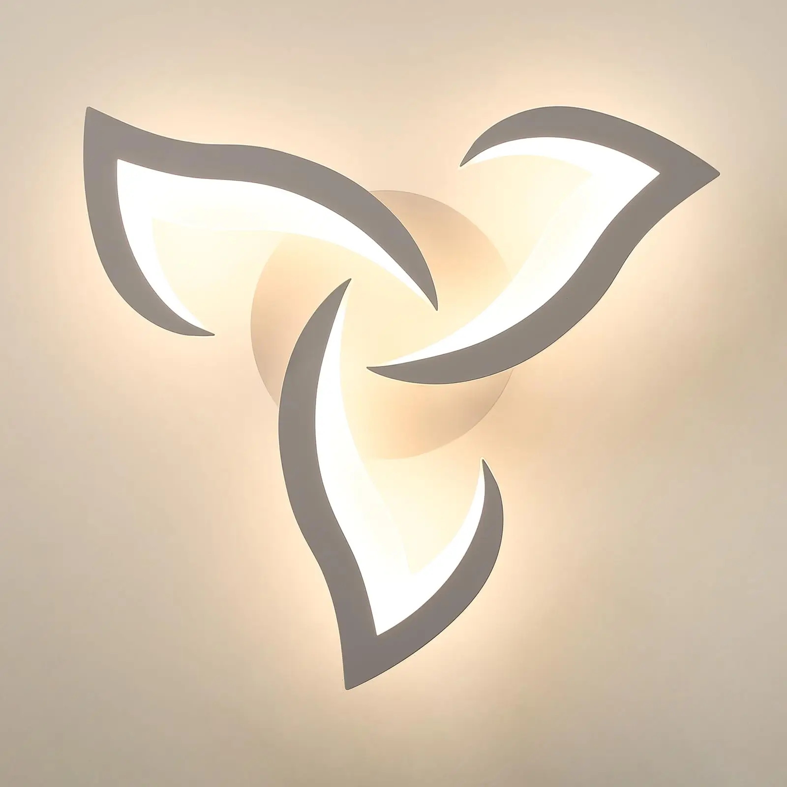 • Artystyczna forma: Unikalny kształt trzech płatków oferuje nowoczesną alternatywę dla klasycznych plafonów, nadając pomieszczeniu lekkości i świeżości.