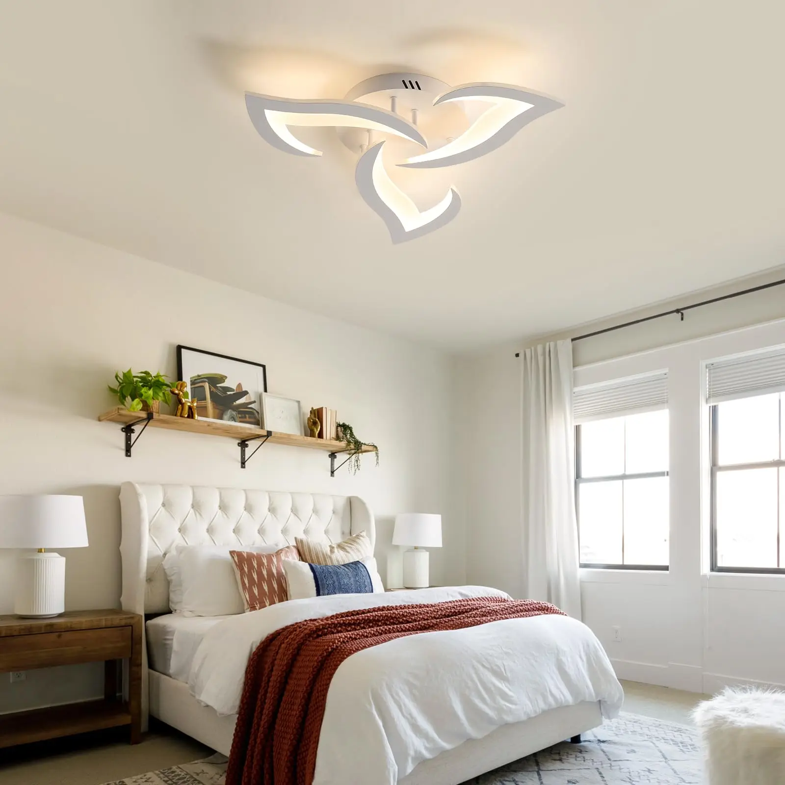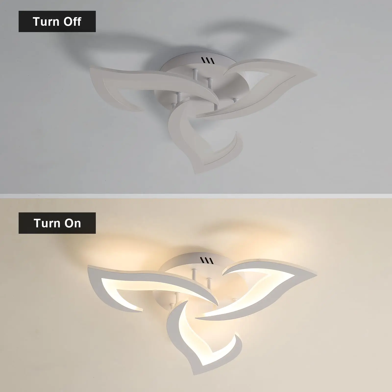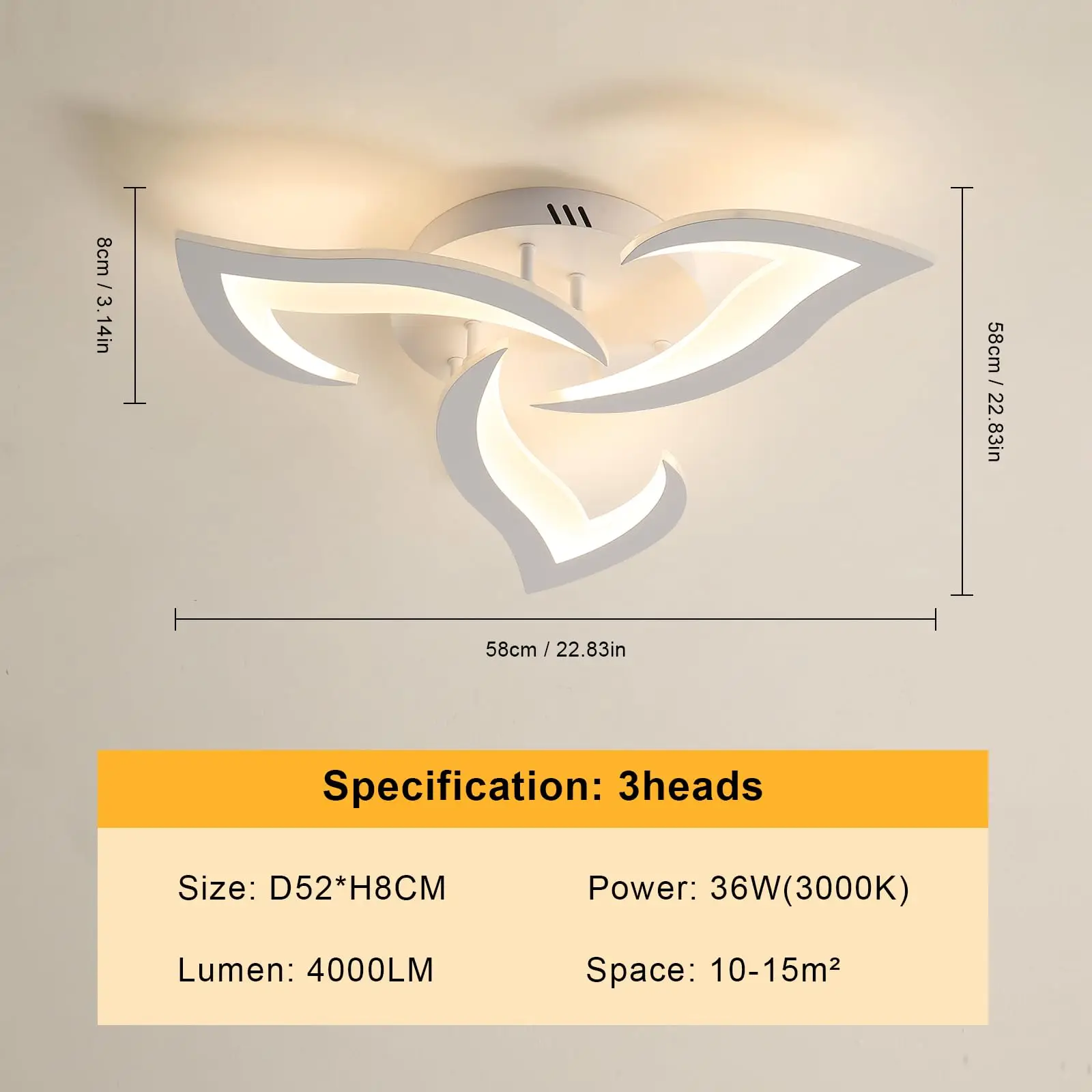 • Artystyczna forma: Unikalny kształt trzech płatków oferuje nowoczesną alternatywę dla klasycznych plafonów, nadając pomieszczeniu lekkości i świeżości.