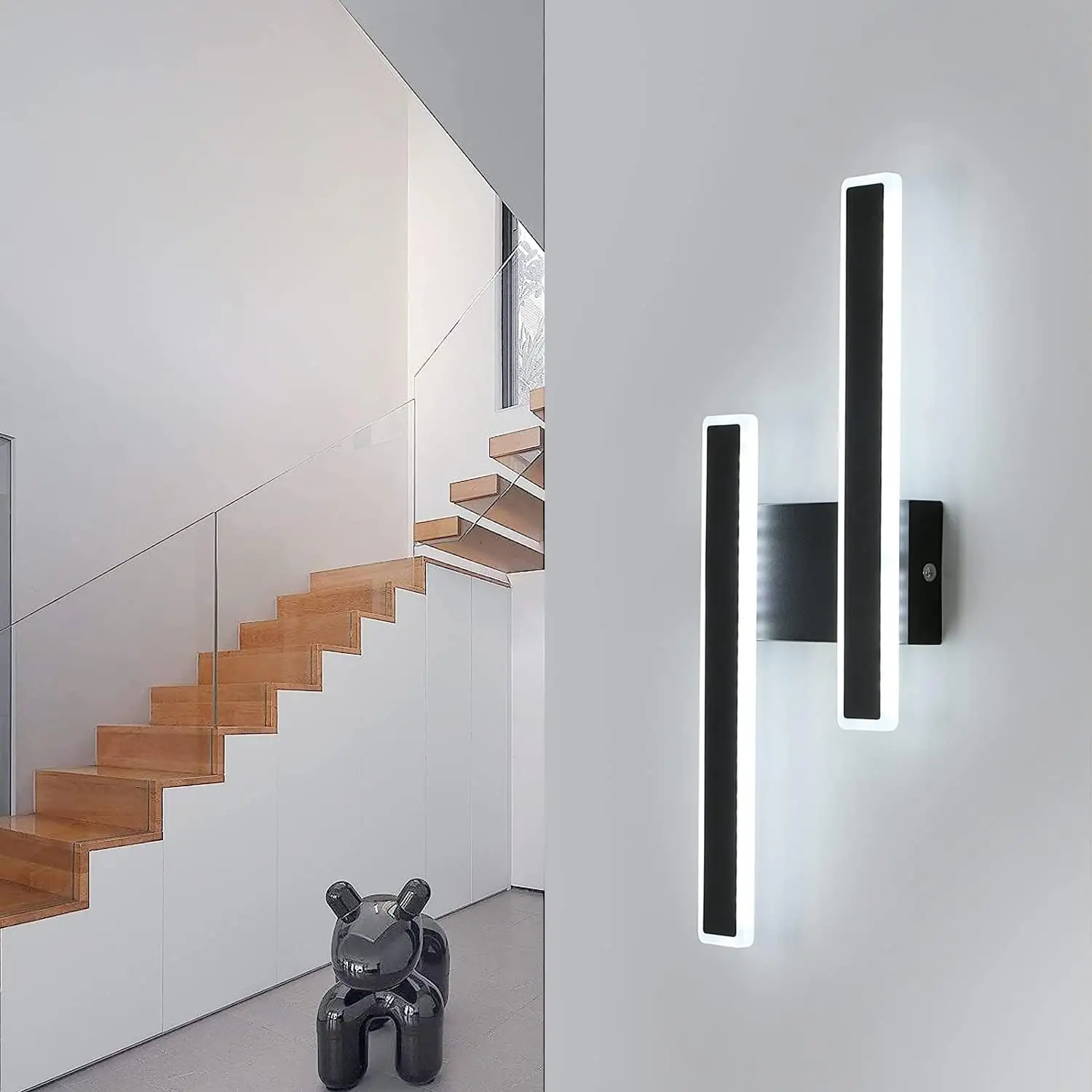 The power of light in geometric expression. Vektor is a wall lamp created for those who expect uncompromising brightness and distinctive design from their lighting. With an impressive 32W output, this model generates a much stronger beam of light than standard wall fixtures, making it an excellent solution for illuminating stairwells, long hallways, or modern living rooms. The black, rectangular structure, 46 cm long, made of high-quality aluminum and acrylic, creates a bold, architectural accent on the wall. The cool 6500K color emphasizes the sterility and modernity of the interior, giving it a professional and fresh look.