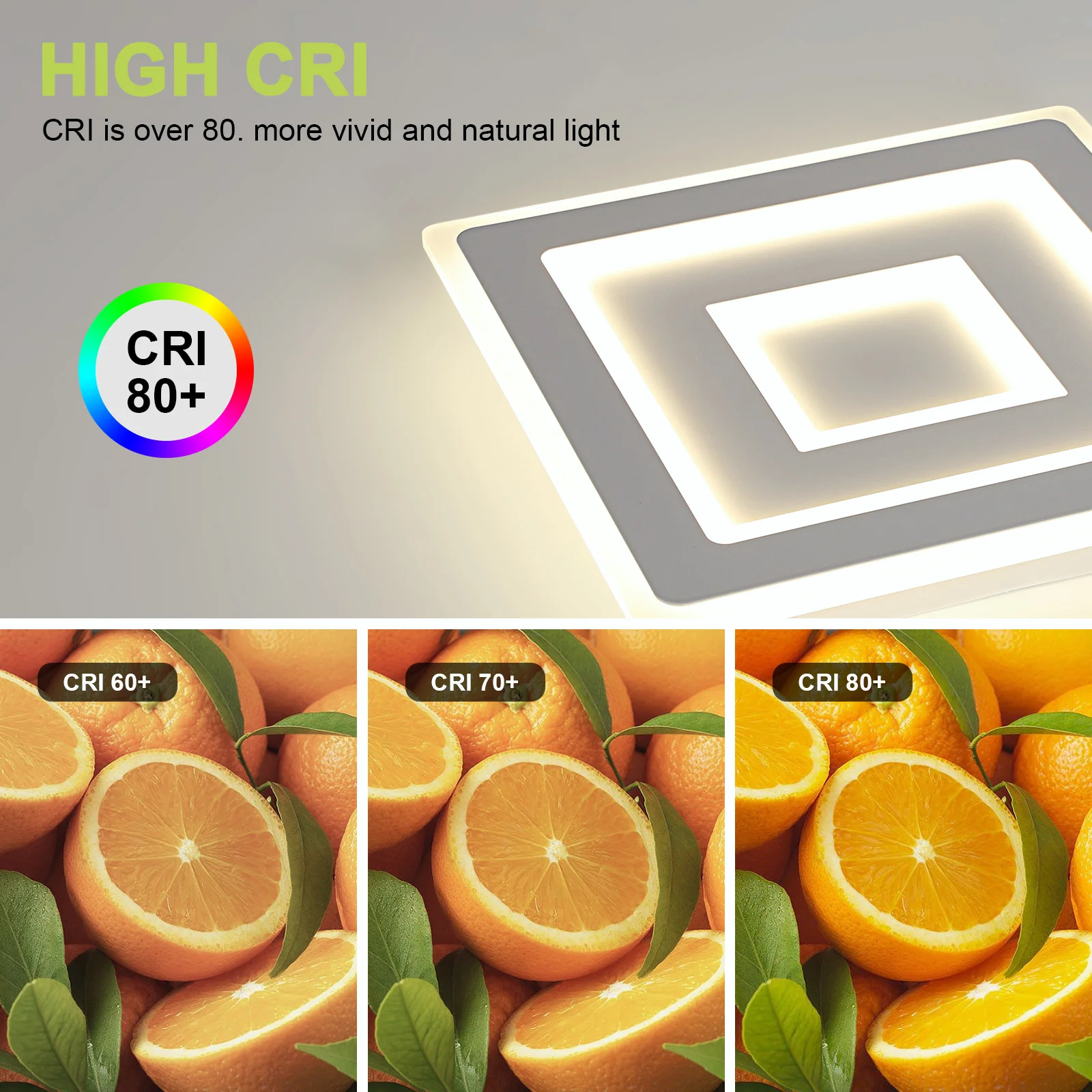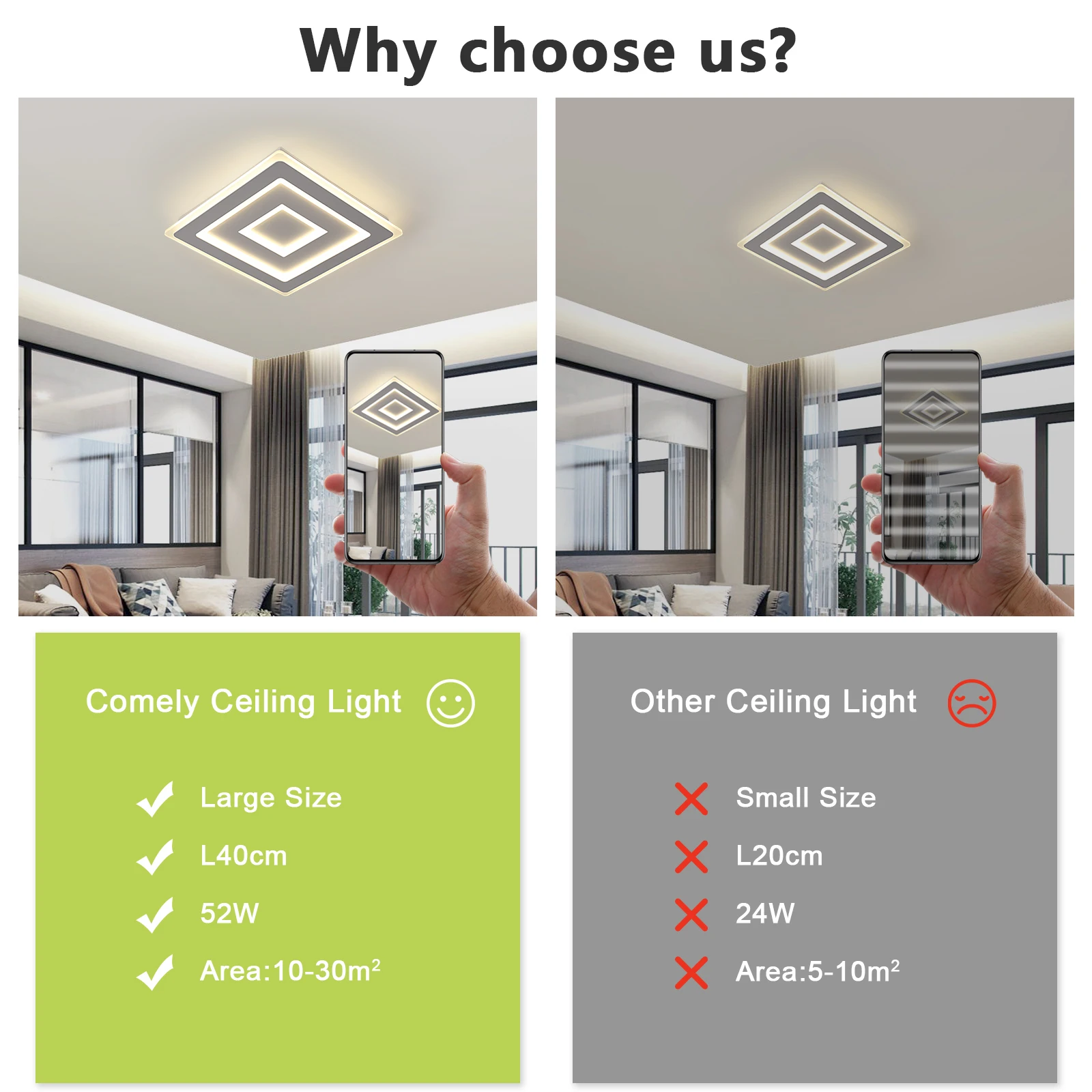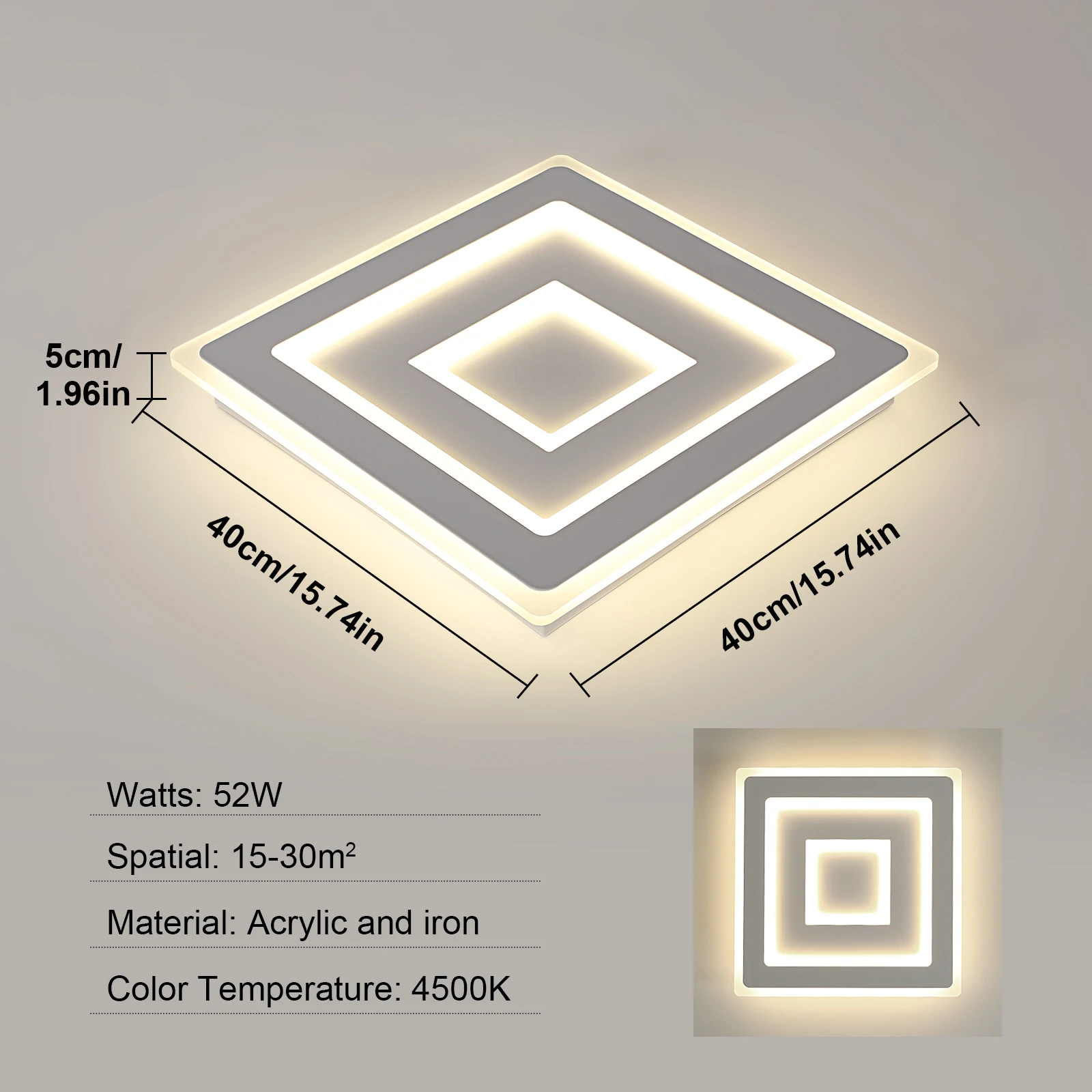 Power and efficiency: 52W power allows for effective lighting of even large areas (up to 30 m²), ensuring brightness without the glare effect thanks to the advanced acrylic diffuser.