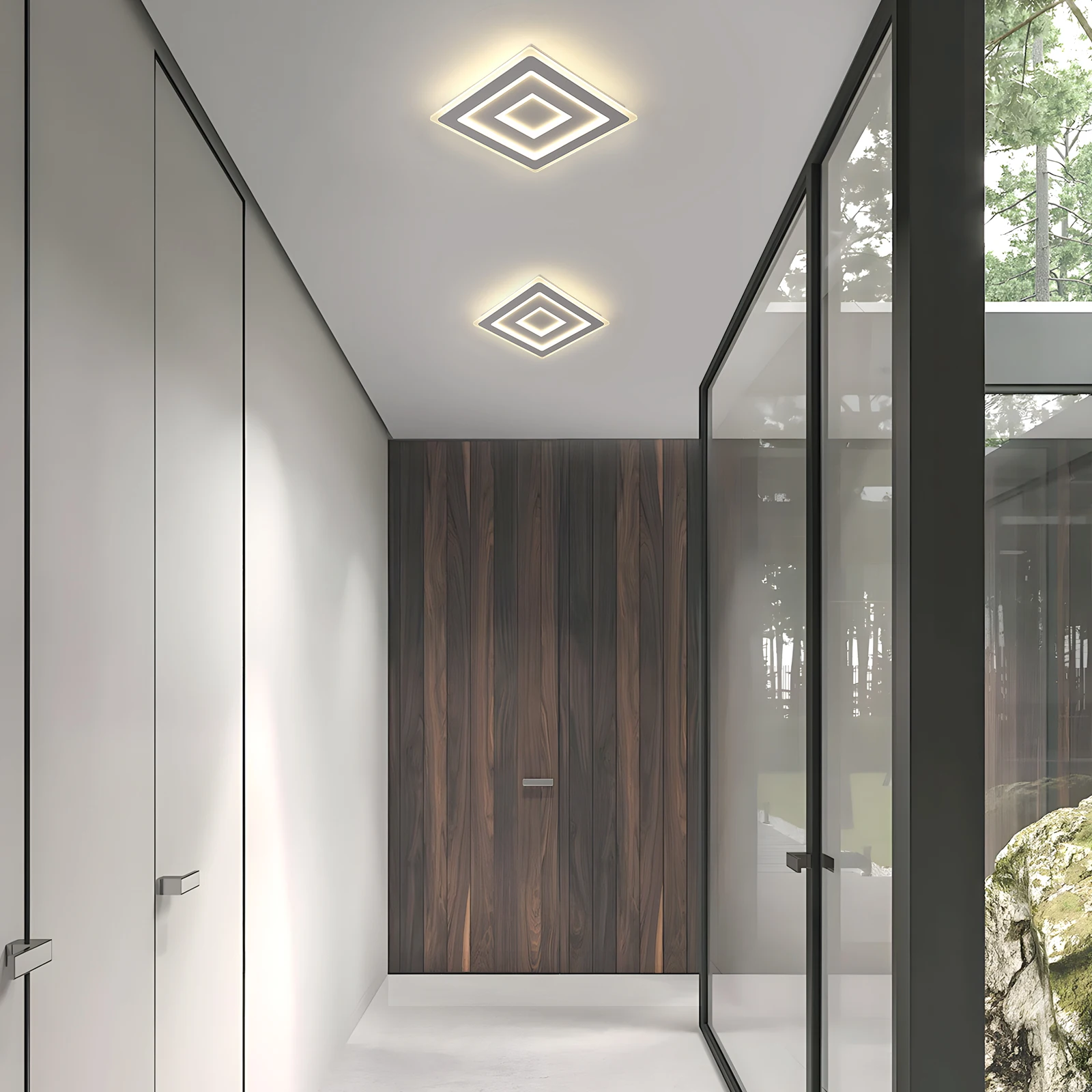 Purity of form in an ultra-thin design. The Quadra model is the essence of contemporary minimalism. With its exceptionally slim design (only 5 cm high) and austere, square silhouette, this fixture becomes an integral part of the ceiling without overwhelming the interior. The matte white finish allows the lamp to emit light that seems to emerge directly from the room's architecture, creating an atmosphere of tranquility and modern elegance.